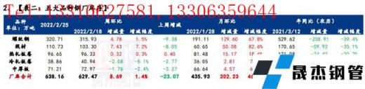 免責聲明:本網站(山東聊城晟杰無縫鋼管廠www.82912.cn)刊載的“解讀:聚焦鋼鐵產業數據(2月24日)—板材總庫存首次去化,建材延續供庫雙增”等均源于網絡,版權歸原作者所有,且僅代表原作者觀點,本文所載信息僅供參考。轉載僅為學習與交流之目的,如無意中侵犯您的合法權益,請及時聯系刪除。本網站刊登此篇文章并不意味著本站贊同其觀點或證實其內容的真實性,我們不對其科學性、嚴肅性等作任何形式的保證。如果侵犯了您的版權,請盡快聯系我們予以撤銷,謝謝合作!