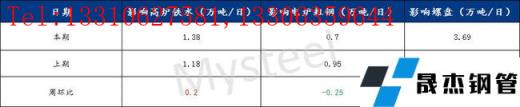江蘇無縫厚壁鋼管廠家本周影響產量小幅增加,共計12家無縫厚壁鋼管廠家非正常生產,較上周檢修停產鋼企數量增加1家,鐵水影響產量增加0.2萬噸/日,粗鋼影響產量減少0.25萬噸/日,成材影響產量減少0.25萬噸/日,隨著下游陸續復工復產,厚壁無縫鋼管交易邏輯將逐步從預期轉為現實,需求好轉的預期能否兌現以及庫存消化的幅度將成為市場重要影響因素,本周鋼企生產變動不大,短期將或一直保持這樣的生產節奏。具體情況及各主要品種日均影響產量(單位:萬噸)詳見下表: