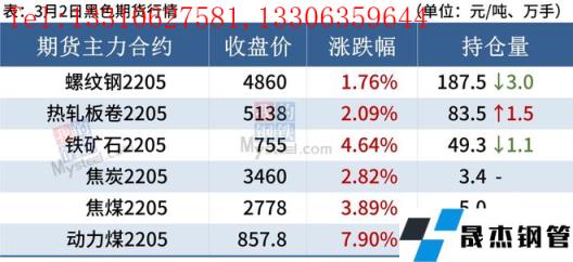 熱軋板卷:3月2日,全國(guó)24個(gè)主要城市4.75mm熱軋板卷均價(jià)5120元/噸,較上個(gè)交易日上漲41元/噸。早盤大漲,現(xiàn)貨報(bào)價(jià)繼續(xù)上漲,成交表現(xiàn)尚可,午后期卷漲幅收縮,下游采購(gòu)量放緩,全天成交一般。綜合來(lái)看,3月份在冬奧會(huì)結(jié)束后,兩會(huì)、殘奧會(huì)即將開幕,3月份產(chǎn)量雖然會(huì)有上升但幅度不大,市場(chǎng)到貨壓力小幅減小,以及穩(wěn)增長(zhǎng)政策的刺激下,下游需求或?qū)⒊掷m(xù)增長(zhǎng),實(shí)現(xiàn)供需緊平衡。綜合來(lái)看,預(yù)計(jì)3日熱軋板卷價(jià)格或震蕩偏強(qiáng)為主。