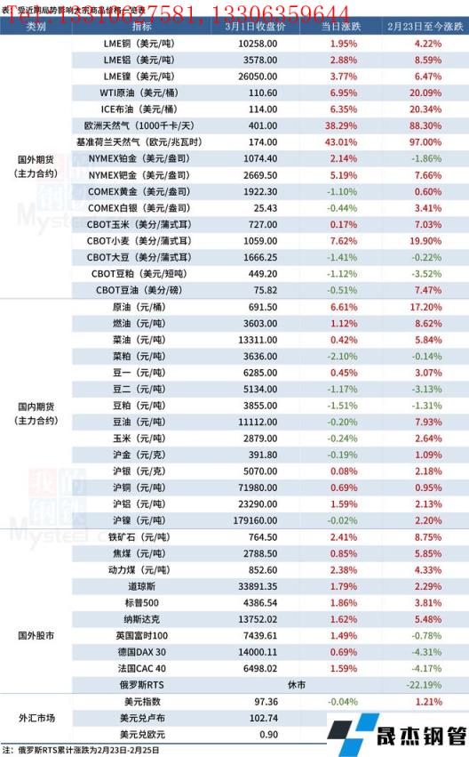 免責聲明:本網站(山東聊城晟杰無縫鋼管廠www.82912.cn)刊載的“受近期局勢影響大宗商品價格一覽表(3月2日)”等均源于網絡,版權歸原作者所有,且僅代表原作者觀點,本文所載信息僅供參考。轉載僅為學習與交流之目的,如無意中侵犯您的合法權益,請及時聯系刪除。本網站刊登此篇文章并不意味著本站贊同其觀點或證實其內容的真實性,我們不對其科學性、嚴肅性等作任何形式的保證。如果侵犯了您的版權,請盡快聯系我們予以撤銷,謝謝合作!
