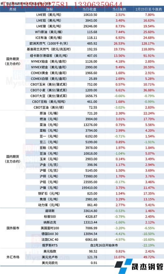 免責聲明:本網站(山東聊城晟杰無縫鋼管廠www.82912.cn)刊載的“2022年03月07日早讀:周末唐山鋼坯累漲60元,國際油價開盤升破130美元”等均源于網絡,版權歸原作者所有,且僅代表原作者觀點,本文所載信息僅供參考。轉載僅為學習與交流之目的,如無意中侵犯您的合法權益,請及時聯系刪除。本網站刊登此篇文章并不意味著本站贊同其觀點或證實其內容的真實性,我們不對其科學性、嚴肅性等作任何形式的保證。如果侵犯了您的版權,請盡快聯系我們予以撤銷,謝謝合作!