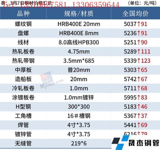 建筑厚壁無縫鋼管:3月7日,全國31個主要城市20mm三級抗震螺紋鋼均價5037元/噸,較上個交易日上漲91元/噸。短期來看,供應方面,隨著冬奧會的結束,3月產量回升是確定性事件,在殘奧會及兩會結束后,產量的回升速度將進一步加快;成交方面,進入金3月下游終端陸續復工,現貨價格跟隨期貨價格反彈后,成交也較2月逐漸進入正軌。綜合來看,在3月市場需求不斷回暖的情況下,還需繼續驗證需求能否大規模持續復蘇,若需求恢復力度尚可,疊加國內宏觀利好持續推進,預計8日國內建筑厚壁無縫鋼管價格將繼續震蕩趨強。