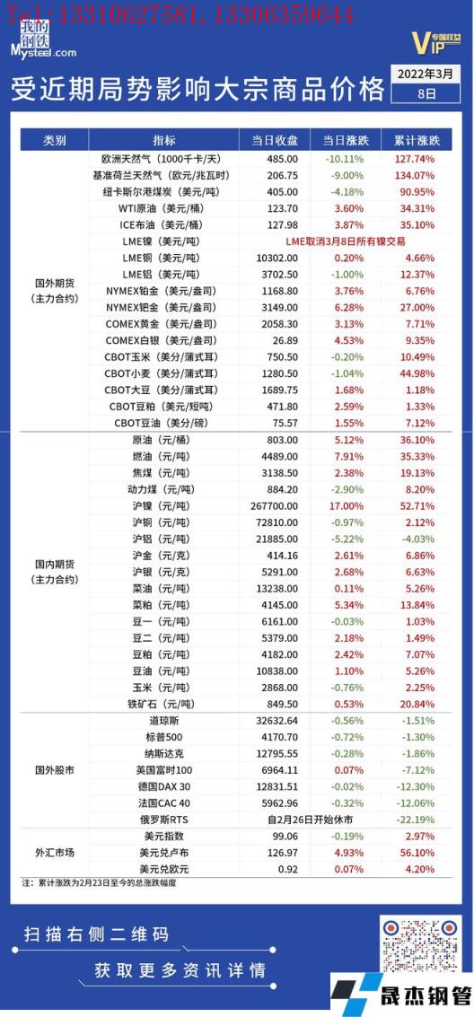 免責聲明:本網站(山東聊城晟杰無縫鋼管廠www.82912.cn)刊載的“受近期局勢影響大宗商品價格一覽表(3月8日)”等均源于網絡,版權歸原作者所有,且僅代表原作者觀點,本文所載信息僅供參考。轉載僅為學習與交流之目的,如無意中侵犯您的合法權益,請及時聯系刪除。本網站刊登此篇文章并不意味著本站贊同其觀點或證實其內容的真實性,我們不對其科學性、嚴肅性等作任何形式的保證。如果侵犯了您的版權,請盡快聯系我們予以撤銷,謝謝合作!