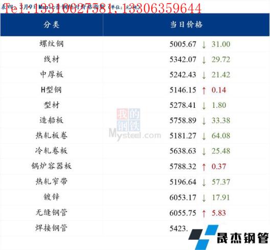 3月9日普鋼絕對價格指數(shù)變化:綜合指數(shù)5270.61,下跌34.55;螺紋鋼指數(shù)5005.67,下跌31.0;線材指數(shù)5342.07,下跌29.72;熱軋板卷指數(shù)5181.27,下跌64.08;冷軋板卷指數(shù)5638.63,下跌25.48;中厚板指數(shù)5242.43,下跌21.42。