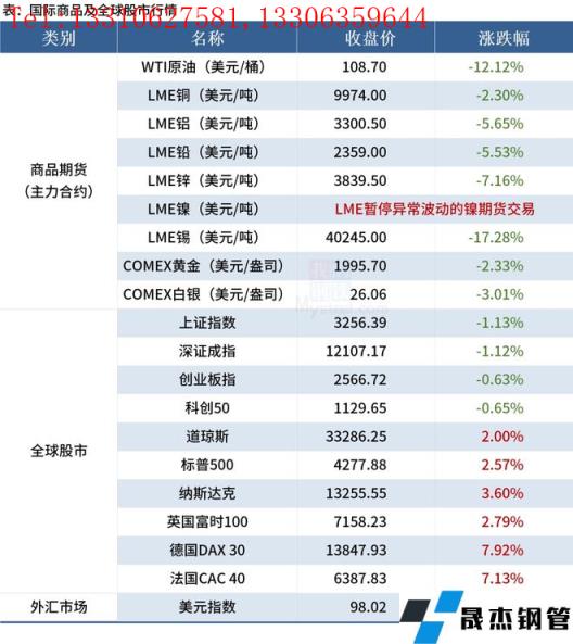 免責聲明:本網(wǎng)站(山東聊城晟杰無縫鋼管廠www.82912.cn)刊載的“2022年03月10日早讀:黑色系夜盤全線下挫,國際油價大跌超12%”等均源于網(wǎng)絡,版權(quán)歸原作者所有,且僅代表原作者觀點,本文所載信息僅供參考。轉(zhuǎn)載僅為學習與交流之目的,如無意中侵犯您的合法權(quán)益,請及時聯(lián)系刪除。本網(wǎng)站刊登此篇文章并不意味著本站贊同其觀點或證實其內(nèi)容的真實性,我們不對其科學性、嚴肅性等作任何形式的保證。如果侵犯了您的版權(quán),請盡快聯(lián)系我們予以撤銷,謝謝合作!