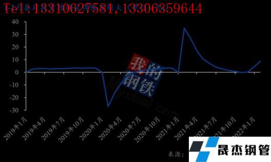 房地產(chǎn)數(shù)據(jù)表現(xiàn)超預期,而且改善程度之大可能是大多數(shù)人未預料到的。全國房地產(chǎn)開發(fā)投資同比增長3.7%,施工面積同比增長1.8%;商品房銷售面積同比下降9.6%,新開工面積同比下降12.2%。去年12月,施工面積和新開工面積同比增速均降至-30%以下,此次施工面積同比轉(zhuǎn)正,且商品房銷售面積和新開工面積同比降速收窄幅度大。另外,竣工面積同比增速確意外地轉(zhuǎn)負。這些數(shù)據(jù)與我們觀察到的高頻數(shù)據(jù)和得到的調(diào)研結(jié)論(見附錄)表現(xiàn)具有較大差異。同時,國房景氣指數(shù)已經(jīng)止住自去年5月以來的下跌趨勢,1-2月該指數(shù)環(huán)比去年12月略微回升。我們提示,國房景氣指數(shù)是觀察房地產(chǎn)行業(yè)和厚壁無縫鋼管價格的重要先行指標,若該指數(shù)反映情況真實,房地產(chǎn)行業(yè)有望在2季度末之前“提前”企穩(wěn),或?qū)癖跓o縫鋼管價格形成一定的支撐。