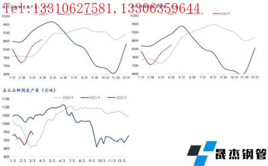 從目前供應(yīng)恢復(fù)情況來(lái)說(shuō),伴隨兩會(huì)、采暖季結(jié)束,企業(yè)生產(chǎn)狀態(tài)逐步恢復(fù)。截至3月11日,調(diào)研五大品種厚壁無(wú)縫鋼管產(chǎn)量達(dá)到935萬(wàn)噸,較春節(jié)后絕對(duì)低點(diǎn)870萬(wàn)噸(2022年2月11日)提升65萬(wàn)噸;調(diào)研247家無(wú)縫厚壁鋼管廠(chǎng)家高爐日均鐵水產(chǎn)量215萬(wàn)噸,較春節(jié)后絕對(duì)低點(diǎn)203噸(2022年2月18日)提升12萬(wàn)噸,可見(jiàn)粗鋼及厚壁無(wú)縫鋼管的供應(yīng)情況有所保證。