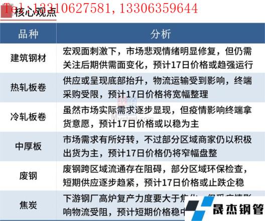 建筑厚壁無縫鋼管:3月16日,全國(guó)31個(gè)主要城市20mm三級(jí)抗震螺紋鋼均價(jià)4908元/噸,較上個(gè)交易日漲19元/噸。短期來看,在宏觀消息刺激下,市場(chǎng)悲觀情緒明顯修復(fù),或?qū)?dòng)現(xiàn)貨市場(chǎng)迎來反彈,至于反彈高度,仍需關(guān)注后期供需面變化,如北方地區(qū)近期高爐集中復(fù)產(chǎn)以及疫情對(duì)于需求端的影響。因此預(yù)期17日國(guó)內(nèi)建筑厚壁無縫鋼管價(jià)格或?qū)⒗^續(xù)趨強(qiáng)運(yùn)行為主。