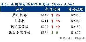 今日全國(guó)部分品種均價(jià)總體趨強(qiáng),其中低合金高強(qiáng)板均價(jià)小幅下跌,跌幅為8元/噸。