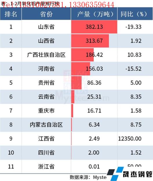免責聲明:本網站(山東聊城晟杰無縫鋼管廠www.82912.cn)刊載的“統計局:1-2月全國分省市鋁材、氧化鋁產量出爐”等均源于網絡,版權歸原作者所有,且僅代表原作者觀點,本文所載信息僅供參考。轉載僅為學習與交流之目的,如無意中侵犯您的合法權益,請及時聯系刪除。本網站刊登此篇文章并不意味著本站贊同其觀點或證實其內容的真實性,我們不對其科學性、嚴肅性等作任何形式的保證。如果侵犯了您的版權,請盡快聯系我們予以撤銷,謝謝合作!