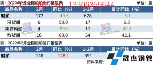免責聲明:本網站(山東聊城晟杰無縫鋼管廠www.82912.cn)刊載的“海關總署:2月中國船舶進口146艘,同比增長128.1%”等均源于網絡,版權歸原作者所有,且僅代表原作者觀點,本文所載信息僅供參考。轉載僅為學習與交流之目的,如無意中侵犯您的合法權益,請及時聯系刪除。本網站刊登此篇文章并不意味著本站贊同其觀點或證實其內容的真實性,我們不對其科學性、嚴肅性等作任何形式的保證。如果侵犯了您的版權,請盡快聯系我們予以撤銷,謝謝合作!