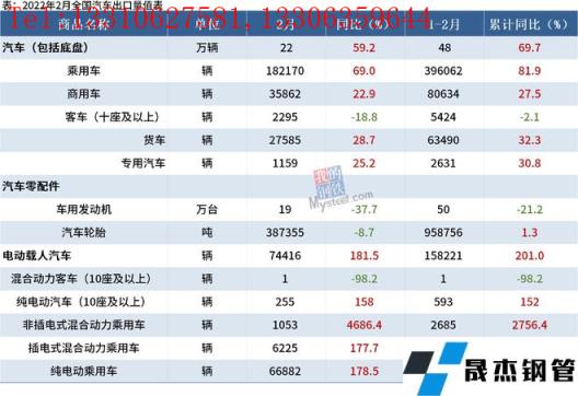 免責聲明:本網站(山東聊城晟杰無縫鋼管廠www.82912.cn)刊載的“海關總署:2月中國出口汽車22萬輛,同比增59.2%”等均源于網絡,版權歸原作者所有,且僅代表原作者觀點,本文所載信息僅供參考。轉載僅為學習與交流之目的,如無意中侵犯您的合法權益,請及時聯系刪除。本網站刊登此篇文章并不意味著本站贊同其觀點或證實其內容的真實性,我們不對其科學性、嚴肅性等作任何形式的保證。如果侵犯了您的版權,請盡快聯系我們予以撤銷,謝謝合作!