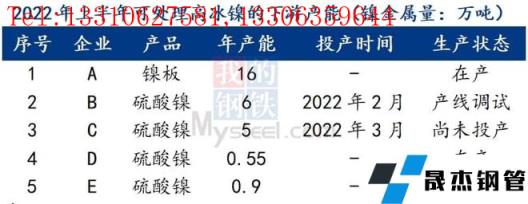 隨著新能源產(chǎn)業(yè)的高速發(fā)展,市場對鎳需求增長,高冰鎳作為硫酸鎳原料的作用也被重視起來。預(yù)計2022年上半年,國內(nèi)可處理高冰鎳的設(shè)備產(chǎn)能鎳金屬量1.34萬噸/月。