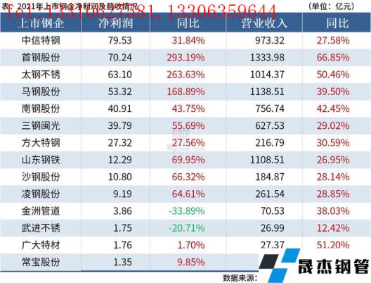 免責聲明:本網站(山東聊城晟杰無縫鋼管廠www.82912.cn)刊載的“14家上市鋼企2021年實現凈利超410億元”等均源于網絡,版權歸原作者所有,且僅代表原作者觀點,本文所載信息僅供參考。轉載僅為學習與交流之目的,如無意中侵犯您的合法權益,請及時聯系刪除。本網站刊登此篇文章并不意味著本站贊同其觀點或證實其內容的真實性,我們不對其科學性、嚴肅性等作任何形式的保證。如果侵犯了您的版權,請盡快聯系我們予以撤銷,謝謝合作!