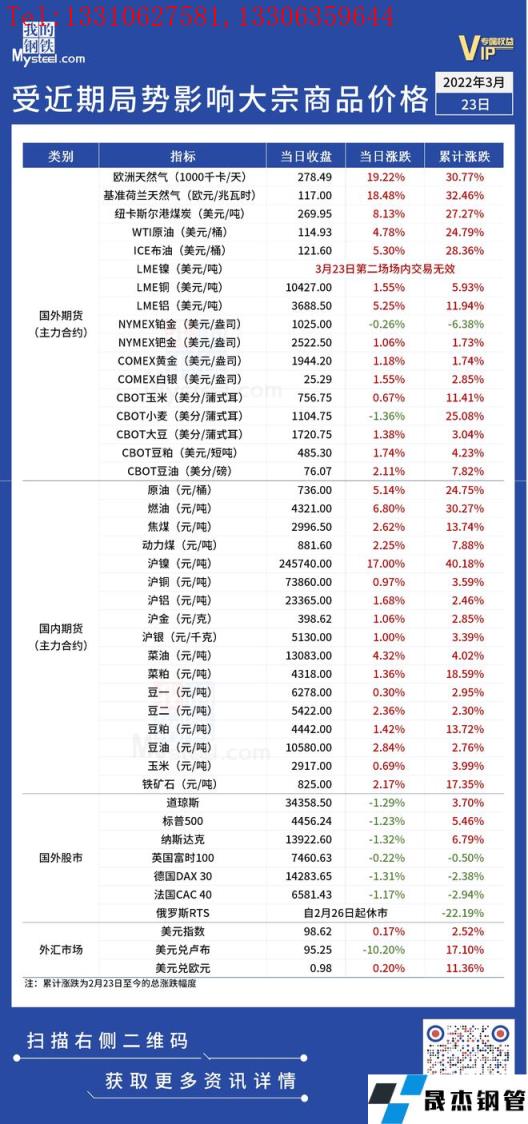 免責聲明:本網站(山東聊城晟杰無縫鋼管廠www.82912.cn)刊載的“受近期局勢影響大宗商品價格一覽表(3月23日)”等均源于網絡,版權歸原作者所有,且僅代表原作者觀點,本文所載信息僅供參考。轉載僅為學習與交流之目的,如無意中侵犯您的合法權益,請及時聯系刪除。本網站刊登此篇文章并不意味著本站贊同其觀點或證實其內容的真實性,我們不對其科學性、嚴肅性等作任何形式的保證。如果侵犯了您的版權,請盡快聯系我們予以撤銷,謝謝合作!