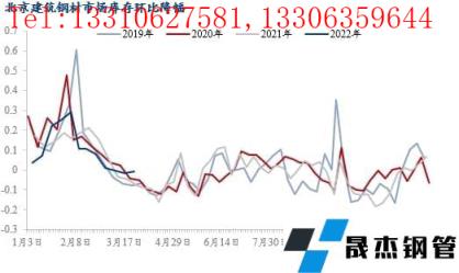 2022年北京建筑厚壁無縫鋼管市場庫存量在春節(jié)后的第5周達到峰值,較往年累庫周期延長了1-2周,之后庫存量進入緩慢去化階段,但是從近幾周庫存去化情況來看,庫存下降情況不及預(yù)期。截止到3月24日,北京建筑厚壁無縫鋼管市場庫存量82.18萬噸,周環(huán)比降0.72%,2019-2021年同期的周環(huán)比降幅分別為7.9%、5.3%、8%;另外目前市場庫存量較今年庫存高點下降了2.8%,而2019-2021年同期庫存量較當(dāng)年的庫存峰值分別下降了17.8%、9.3%、15.5%。庫存下降除供應(yīng)量環(huán)比略增外,主因是需求下降,且受疫情影響資源向外分流困難。