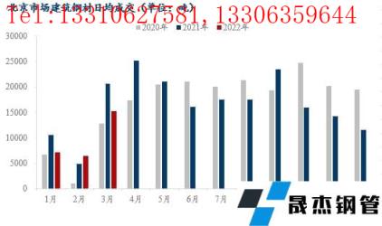 2022年3月份北京建筑厚壁無縫鋼管市場樣本商家日成交量為1.5萬噸,雖然成交環(huán)比增加,但是較去年同期低26%。因樣本商家成交量里包含部分投機需求,故三月份間歇性統(tǒng)計了北京市場的部分庫房的實際出庫量,其中樣本庫房為7個,其庫存量占市場總市場庫存量的76%左右,主要涉及無縫厚壁鋼管廠家資源有河鋼、敬業(yè)、凌鋼、2672、鑫達、亞新、新?lián)徜摗⑽髁值龋?月份的日度出庫量均值在1.7萬噸左右。整體出庫表現(xiàn)不及預(yù)期,且月底較月初未有明顯好轉(zhuǎn)。