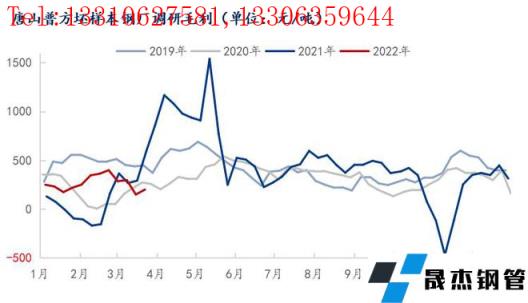 鋼坯盈利情況:本周唐山地區主流樣本無縫厚壁鋼管廠家平均鐵水不含稅成本為3464元/噸,平均鋼坯含稅成本4521元/噸,周環比上調10元/噸,與3月25日當前普方坯出廠價格4800元/噸相比,無縫厚壁鋼管廠家平均毛利潤279元/噸,周環比上調70元/噸。