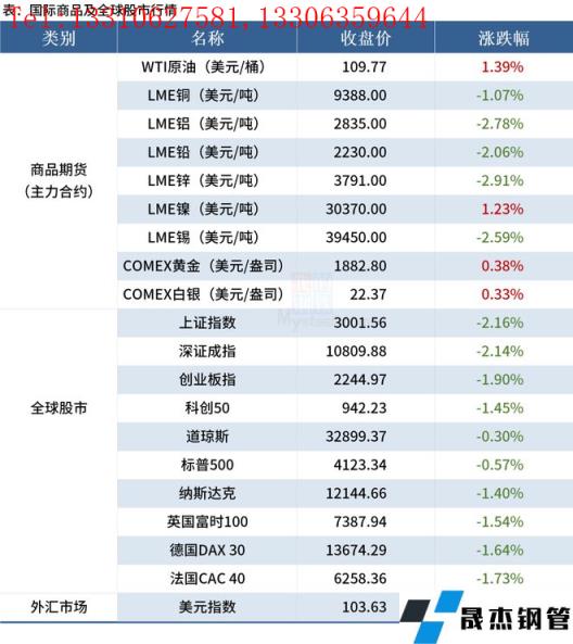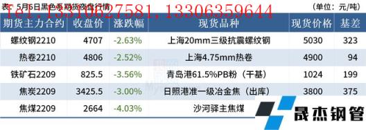 ◎5月6日,河北、山西等地焦企焦炭?jī)r(jià)格第一輪下調(diào)200元/噸,主流無(wú)縫厚壁鋼管廠家暫無(wú)回應(yīng)。按照當(dāng)前的市場(chǎng)情緒和盤面給出的市場(chǎng)預(yù)期,普遍認(rèn)為此輪焦炭的降幅在三輪左右,大概能達(dá)500-600元/噸。
