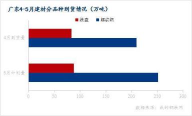 圖四:廣東建材4-5月分品種到貨情況(單位:萬噸)