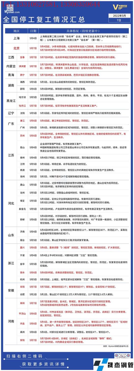 免責(zé)聲明:本網(wǎng)站(山東聊城晟杰無縫鋼管廠www.82912.cn)刊載的“疫情影響丨全國停工復(fù)工情況匯總(5月7日)”等均源于網(wǎng)絡(luò),版權(quán)歸原作者所有,且僅代表原作者觀點,本文所載信息僅供參考。轉(zhuǎn)載僅為學(xué)習(xí)與交流之目的,如無意中侵犯您的合法權(quán)益,請及時聯(lián)系刪除。本網(wǎng)站刊登此篇文章并不意味著本站贊同其觀點或證實其內(nèi)容的真實性,我們不對其科學(xué)性、嚴肅性等作任何形式的保證。如果侵犯了您的版權(quán),請盡快聯(lián)系我們予以撤銷,謝謝合作!