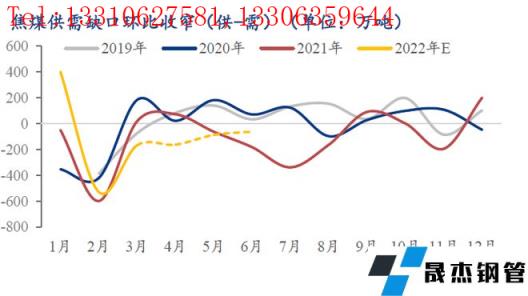 在地緣政治沖突等因素的影響下,國際焦煤供需格局偏緊,全球煤價整體走強,制約我國焦煤進口。2022年1月下旬至4月下旬,不斷沖擊年內(nèi)新高的鐵水疊加進口減量,焦煤四部門(港口+煤礦+焦企+無縫厚壁鋼管廠家)庫存連續(xù)12周降庫。剔除澳煤通關(guān)量,焦煤進口一季度同比下滑約百萬噸。而近期不斷傳出有進口增量消息的蒙煤則備受市場期待,我們認為在今年粗鋼產(chǎn)量限產(chǎn)的背景下,鐵水產(chǎn)量有望逐步見頂,焦煤即將擺脫需求最好供應(yīng)最差的時期。由此,在焦煤利潤高位,厚壁無縫鋼管利潤受制及供需缺口環(huán)比減少的情況下,焦煤價格存在階段性高位回調(diào)風險。