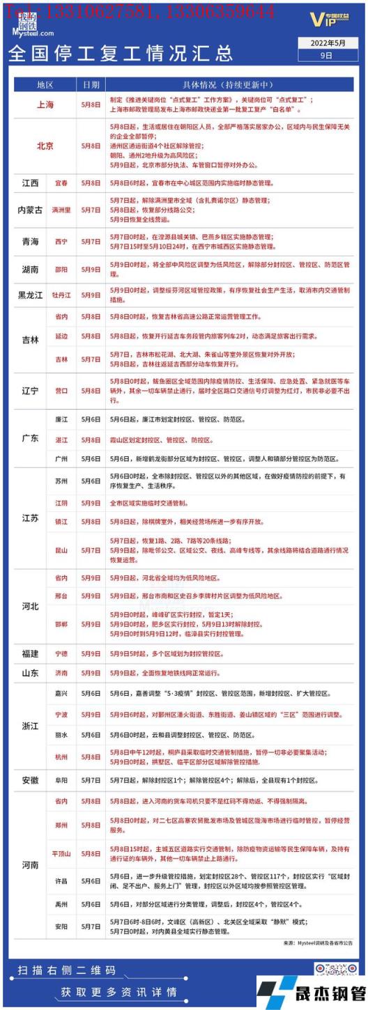 免責聲明:本網站(山東聊城晟杰無縫鋼管廠www.82912.cn)刊載的“疫情影響丨全國停工復工情況匯總(5月9日)”等均源于網絡,版權歸原作者所有,且僅代表原作者觀點,本文所載信息僅供參考。轉載僅為學習與交流之目的,如無意中侵犯您的合法權益,請及時聯系刪除。本網站刊登此篇文章并不意味著本站贊同其觀點或證實其內容的真實性,我們不對其科學性、嚴肅性等作任何形式的保證。如果侵犯了您的版權,請盡快聯系我們予以撤銷,謝謝合作!