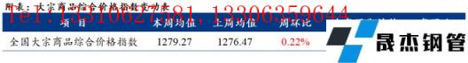 本周全國大宗商品綜合價格指數均值為1279.27,環比上升,增幅0.22%(前值9.91%);同比上升,增幅13.89%(前值15.65%)。