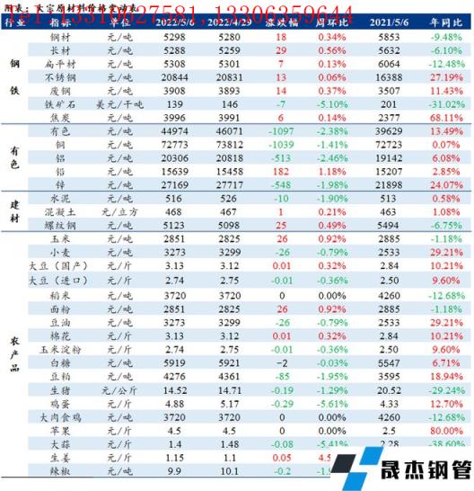 免責聲明:本網站(山東聊城晟杰無縫鋼管廠www.82912.cn)刊載的“周報:大宗工業原材料、能源及農產品價格周報(4.29-5.06)”等均源于網絡,版權歸原作者所有,且僅代表原作者觀點,本文所載信息僅供參考。轉載僅為學習與交流之目的,如無意中侵犯您的合法權益,請及時聯系刪除。本網站刊登此篇文章并不意味著本站贊同其觀點或證實其內容的真實性,我們不對其科學性、嚴肅性等作任何形式的保證。如果侵犯了您的版權,請盡快聯系我們予以撤銷,謝謝合作!