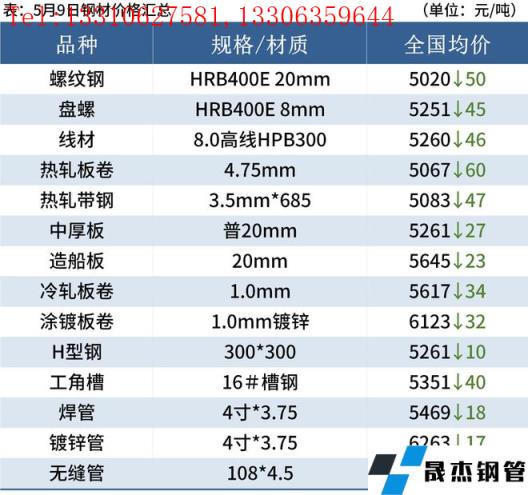 建筑厚壁無縫鋼管:5月9日,全國31個主要城市20mm三級抗震螺紋鋼均價5022元/噸,較上個交易日下跌50元/噸。短期來看,近期市場心態偏悲觀,同時華東、華南即將迎來新一輪汛期,現貨銷售壓力加大。因此在缺乏有效強需求支撐下,預計10日建筑厚壁無縫鋼管價格或將窄幅偏弱運行。