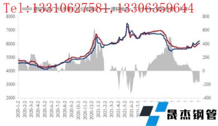華東和華南作為鍍鋅板卷三大主流區域中的兩個,其分工職責略有不同,華東地區以上海為例,其更多是作為無縫厚壁鋼管廠家投放資源的聚集地。隨著周邊江蘇、浙江等下游產業越來越集中,上海地區資源真正消化也是依托周邊市場。而華南市場一直以來作為消費市場,基本屬于是資源流入型區域,尤其是華東、華北地區資源,依托水運將大部分資源發往華南。無論是從地理位置還是資源消費,華南地區價格本應該處于三大主流區域中價格最高的水平,但是從圖1可以明顯看出,2021年6月中下旬到8月上旬,差不多維持了一個半月的倒掛,華南地區鍍鋅板卷價格較華東地區倒掛幅度達到200元/噸左右。