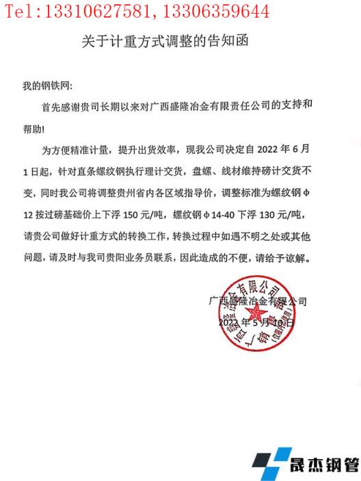 免責聲明:本網站(山東聊城晟杰無縫鋼管廠www.82912.cn)刊載的“廣西盛隆冶金有限公司關于對貴州區域計重方式調整的告知函”等均源于網絡,版權歸原作者所有,且僅代表原作者觀點,本文所載信息僅供參考。轉載僅為學習與交流之目的,如無意中侵犯您的合法權益,請及時聯系刪除。本網站刊登此篇文章并不意味著本站贊同其觀點或證實其內容的真實性,我們不對其科學性、嚴肅性等作任何形式的保證。如果侵犯了您的版權,請盡快聯系我們予以撤銷,謝謝合作!