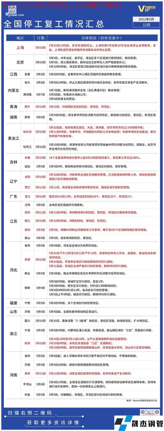 疫情影響丨全國停工復工情況匯總(5月9日)