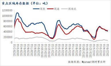綜合來看,本周福建市場社會庫存數(shù)據(jù)環(huán)比上周減少2.83萬噸,庫存降幅為2.89%,同比去年增加2.58萬噸,增幅為2.79%。從數(shù)據(jù)上來看,本周福建省社會庫存呈現(xiàn)持續(xù)下降的趨勢,整體降幅較小。庫存下降主要體現(xiàn)在閩東和閩西北兩個區(qū)域,一方面是因原材料價格居高不下,獨立電弧爐廠成本較高紛紛進入停產(chǎn)、縮減開工時長等供應(yīng)端資源大幅減少;另一方面,外省價格相對于本省價格偏高,部分資源有一定的外發(fā),因此本周本省庫存有所下降。從后期來看,近期本省雨水天氣較多,對下游施工影響較大,市場整體需求進入疲軟狀態(tài),再者市場價格持續(xù)走弱,下游買漲不買跌的情況一直出現(xiàn),整體交投慘淡,雖本省的電爐廠持續(xù)檢修減產(chǎn)中,但供應(yīng)端產(chǎn)出資源大于需求端,因此預(yù)計下周福建省社會庫存總量或出現(xiàn)增幅的現(xiàn)象。