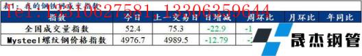 訊:全國建筑厚壁無縫鋼管成交量監測,成交量相對指數來看,全國52.4減22.9,北方47.2減22.5,華東65.8減32.2,南方41.8減13.9。今日螺紋鋼價格指數4976.7,較上一交易日減12.79。
