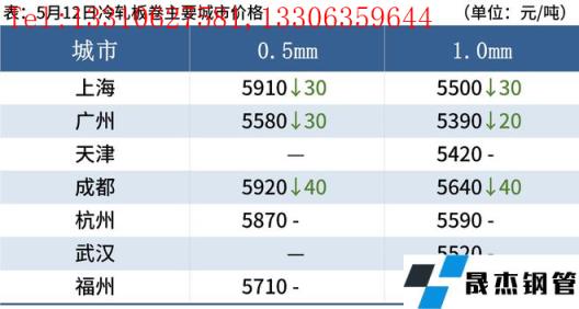 冷軋板卷:5月12日,全國(guó)24個(gè)主要城市1.0mm冷卷均價(jià)5569元/噸,較上個(gè)交易日下跌7元/噸。今日黑色系期貨盤面呈高開低走,現(xiàn)貨市場(chǎng)報(bào)價(jià)混亂,部分商家報(bào)價(jià)以穩(wěn)為主,今日成交表現(xiàn)偏差。心態(tài)方面,南方近期進(jìn)入汛期,市場(chǎng)需求或?qū)⒂兴鶞?,商家心態(tài)多謹(jǐn)慎,當(dāng)下操作以出貨成交為主。庫(kù)存方面,據(jù)不完全統(tǒng)計(jì),本周冷軋無(wú)縫厚壁鋼管廠家?guī)齑?3.05萬(wàn)噸,周環(huán)比減少1.08萬(wàn)噸,社會(huì)庫(kù)存136.81萬(wàn)噸,周環(huán)比減少2.60萬(wàn)噸,周消費(fèi)量83.81萬(wàn)噸,環(huán)比增加0.50萬(wàn)噸。綜合來看,故預(yù)計(jì)13日國(guó)內(nèi)冷軋板卷價(jià)格或?qū)⒄鹗幤踹\(yùn)行。
