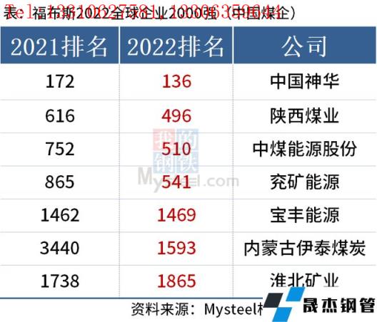 免責聲明:本網站(山東聊城晟杰無縫鋼管廠www.82912.cn)刊載的“中國7家煤企上榜福布斯2022全球企業2000強”等均源于網絡,版權歸原作者所有,且僅代表原作者觀點,本文所載信息僅供參考。轉載僅為學習與交流之目的,如無意中侵犯您的合法權益,請及時聯系刪除。本網站刊登此篇文章并不意味著本站贊同其觀點或證實其內容的真實性,我們不對其科學性、嚴肅性等作任何形式的保證。如果侵犯了您的版權,請盡快聯系我們予以撤銷,謝謝合作!