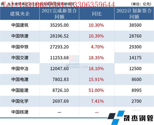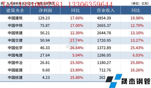 免責聲明:本網站(山東聊城晟杰無縫鋼管廠www.82912.cn)刊載的“9大建筑央企預計2022年營收超6.6萬億元”等均源于網絡,版權歸原作者所有,且僅代表原作者觀點,本文所載信息僅供參考。轉載僅為學習與交流之目的,如無意中侵犯您的合法權益,請及時聯系刪除。本網站刊登此篇文章并不意味著本站贊同其觀點或證實其內容的真實性,我們不對其科學性、嚴肅性等作任何形式的保證。如果侵犯了您的版權,請盡快聯系我們予以撤銷,謝謝合作!