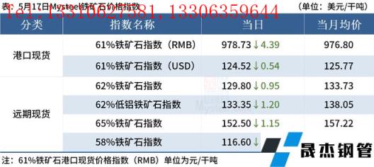 ◎5月17日,全國(guó)主港鐵礦石成交96.50萬(wàn)噸,環(huán)比增40.9%;237家主流貿(mào)易商建材成交14.30萬(wàn)噸,環(huán)比減17.5%。