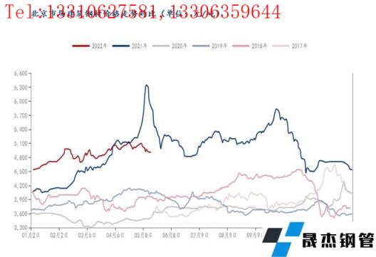 自四月下旬疫情在北京小范圍蔓延以來,京津冀建筑厚壁無縫鋼管價格震蕩趨弱運行。回顧北京市場今年的價格情況, 2月:需求提前收尾,生產(chǎn)節(jié)奏緩慢, 成本支持較高,價格小幅探漲30元/噸;3月:原料價格大漲,產(chǎn)量繼續(xù)縮減,庫存小幅去化,價格大幅走強220元/噸;4月,利好政策頻出,成本支撐較強,疫情反復(fù)影響,庫存去化受阻,價格上漲動力不強,僅趨強70元/噸。