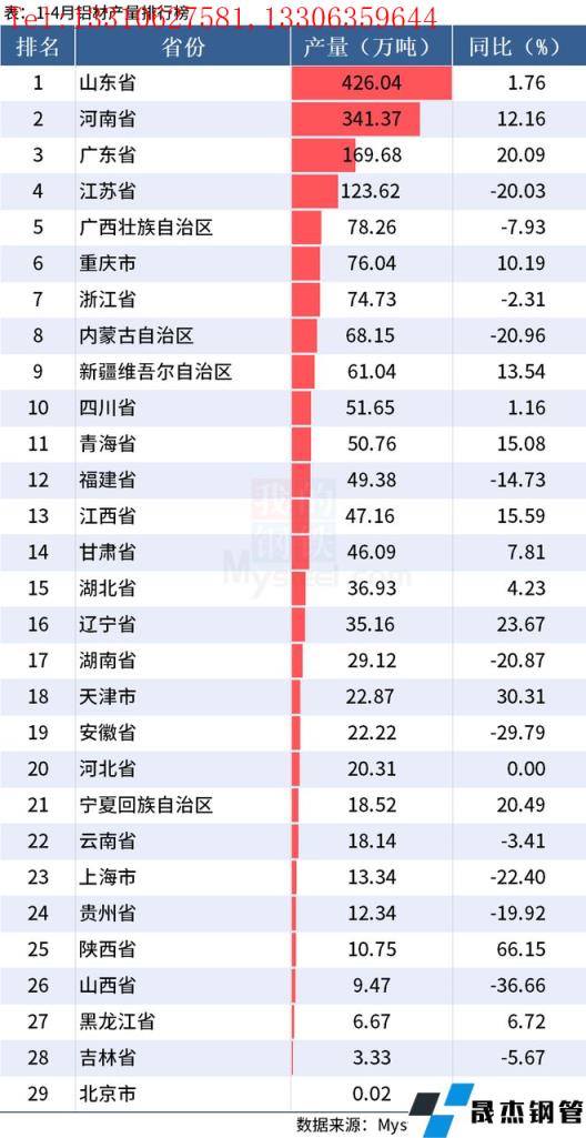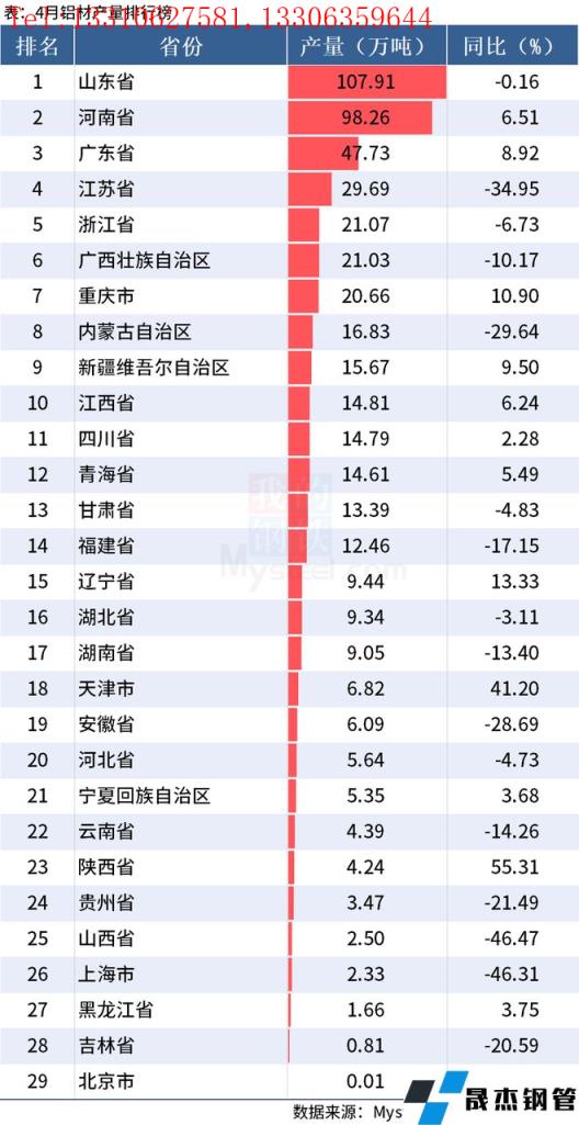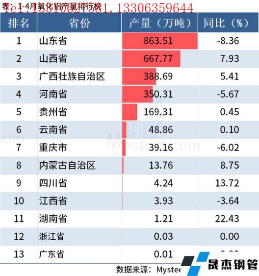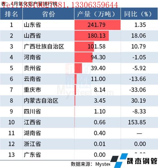免責聲明:本網站(山東聊城晟杰無縫鋼管廠www.82912.cn)刊載的“統計局:前4月全國分省市鋁材、氧化鋁產量出爐”等均源于網絡,版權歸原作者所有,且僅代表原作者觀點,本文所載信息僅供參考。轉載僅為學習與交流之目的,如無意中侵犯您的合法權益,請及時聯系刪除。本網站刊登此篇文章并不意味著本站贊同其觀點或證實其內容的真實性,我們不對其科學性、嚴肅性等作任何形式的保證。如果侵犯了您的版權,請盡快聯系我們予以撤銷,謝謝合作!