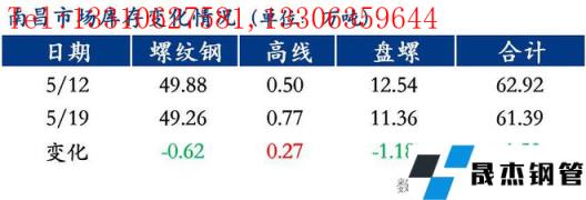 江西省內(nèi)建筑厚壁無縫鋼管社會庫存延續(xù)上周小幅下降的趨勢。截止5月19日,據(jù)我網(wǎng)調(diào)研江西省主流市場包括南昌、贛州、九江、新余和鷹潭五大市場的樣本倉庫建筑厚壁無縫鋼管社會庫存總量為77.98萬噸,較上周小幅減少1.52萬噸,降幅1.91%。
