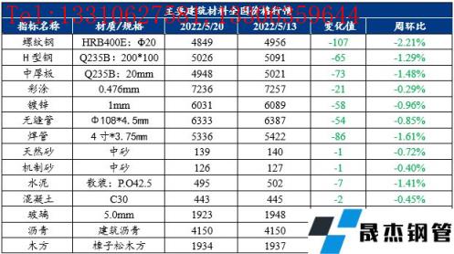 免責聲明:本網站(山東聊城晟杰無縫鋼管廠www.82912.cn)刊載的“建筑原材料周報(5.16-5.20)”等均源于網絡,版權歸原作者所有,且僅代表原作者觀點,本文所載信息僅供參考。轉載僅為學習與交流之目的,如無意中侵犯您的合法權益,請及時聯(lián)系刪除。本網站刊登此篇文章并不意味著本站贊同其觀點或證實其內容的真實性,我們不對其科學性、嚴肅性等作任何形式的保證。如果侵犯了您的版權,請盡快聯(lián)系我們予以撤銷,謝謝合作!