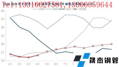 圖5 2019年-2021年全國外三元生豬均價及2022年預測走勢圖