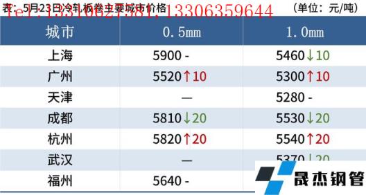 冷軋板卷:5月23日,全國24個主要城市1.0mm冷卷均價5480元/噸,較上個交易日下跌7元/噸。今日期貨熱卷盤面震蕩下行,現貨價格震蕩趨弱運行;雖上海已實現社會面清零,疫情得到有效控制,但據貿易商反饋,目前上海市場只有部分倉庫已復工,部分道路和區域仍然受管制,出貨量很不理想,回款基本上靠投放在無錫、常州等市場的資源。心態方面,上海貿易商把大量資源投放周邊市場,一定程度上也增加了周邊市場的競爭壓力,無錫、常州等地貿易商近日也反饋成交較為一般,基本以長期固定訂單為主,對近日的行情多不太看好。綜合來看,預計24日國內冷軋板卷價格或將繼續震蕩趨弱運行。