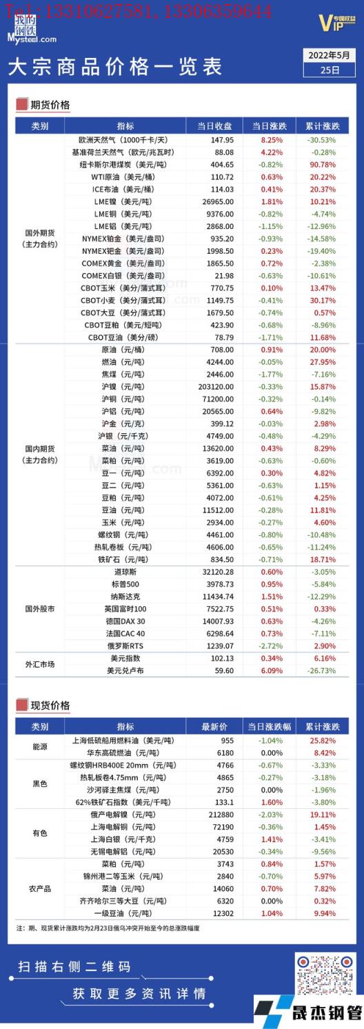 免責(zé)聲明:本網(wǎng)站(山東聊城晟杰無(wú)縫鋼管廠www.82912.cn)刊載的“俄烏局勢(shì)丨大宗商品價(jià)格一覽表(5月25日)”等均源于網(wǎng)絡(luò),版權(quán)歸原作者所有,且僅代表原作者觀點(diǎn),本文所載信息僅供參考。轉(zhuǎn)載僅為學(xué)習(xí)與交流之目的,如無(wú)意中侵犯您的合法權(quán)益,請(qǐng)及時(shí)聯(lián)系刪除。本網(wǎng)站刊登此篇文章并不意味著本站贊同其觀點(diǎn)或證實(shí)其內(nèi)容的真實(shí)性,我們不對(duì)其科學(xué)性、嚴(yán)肅性等作任何形式的保證。如果侵犯了您的版權(quán),請(qǐng)盡快聯(lián)系我們予以撤銷,謝謝合作!