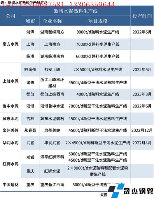免責聲明:本網站(山東聊城晟杰無縫鋼管廠www.82912.cn)刊載的“:5月新增11條熟料水泥生產線,紅獅產能最大”等均源于網絡,版權歸原作者所有,且僅代表原作者觀點,本文所載信息僅供參考。轉載僅為學習與交流之目的,如無意中侵犯您的合法權益,請及時聯系刪除。本網站刊登此篇文章并不意味著本站贊同其觀點或證實其內容的真實性,我們不對其科學性、嚴肅性等作任何形式的保證。如果侵犯了您的版權,請盡快聯系我們予以撤銷,謝謝合作!