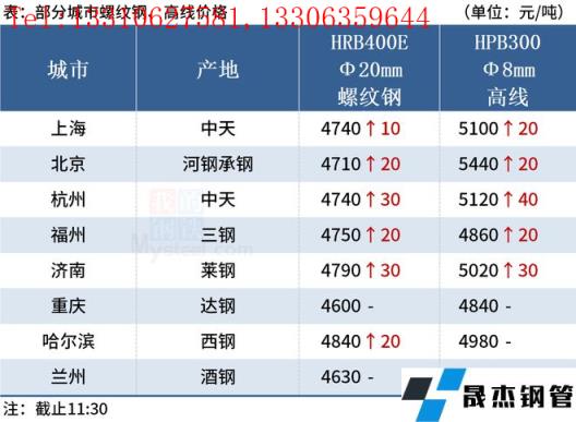 ◎上海:27日早盤建材市場(chǎng)價(jià)格小幅上漲10-20。現(xiàn)螺紋4670-4710,西城抗震4710,其他4540-4590,興鑫抗震4600,聯(lián)鑫黃海抗震4610,盤螺4910-5110,高線亞新4850。(單位:元/噸)