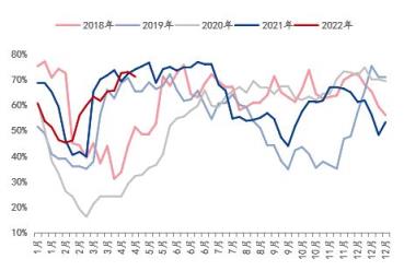 結(jié)合相應(yīng)的產(chǎn)能利用率來看,截止至2022年4月底,湖北省螺紋鋼產(chǎn)能利用率約在71.22%,高于近5年的每年平均水平,且從走勢(shì)圖上看,基本處于歷年產(chǎn)能釋放值的高位運(yùn)行;而線盤產(chǎn)能利用率約在67.54%,尚且低于平均值水平,從走勢(shì)圖上看,并未達(dá)到峰值水平在釋放。由此看來,隨著新增產(chǎn)能的釋放,若產(chǎn)能利用率維持在相對(duì)高位運(yùn)行,將一定程度上在供應(yīng)方面做了疊加效應(yīng)。當(dāng)然,供應(yīng)能力的單方面增加并未能說明價(jià)格一定會(huì)出現(xiàn)偏低運(yùn)行的表現(xiàn),因此需結(jié)合需求的表現(xiàn)來驗(yàn)證一下。