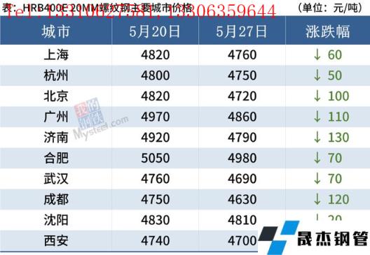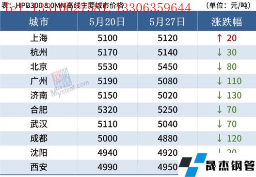 據(jù)監(jiān)測,截至5月27日,全國主要城市20mm三級抗震螺紋鋼均價4765元/噸,較5月20日下跌84元/噸;8.0mmHPB300高線均價5023/噸,較5月20日下跌78元/噸。